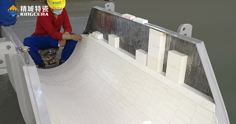 1、選擇大塊厚瓷:小塊陶瓷通常是使用陶瓷粘膠等拼接在一起,在大塊物料的沖擊下,這種陶瓷容易從拼接處開(kāi)裂,會(huì)造成陶瓷碎裂、脫落等現(xiàn)象。而陶瓷厚度不夠也容易被直接砸碎、砸裂,失去防磨防沖擊的效果。因此,在強(qiáng)沖擊工況中盡量選擇大塊厚瓷。