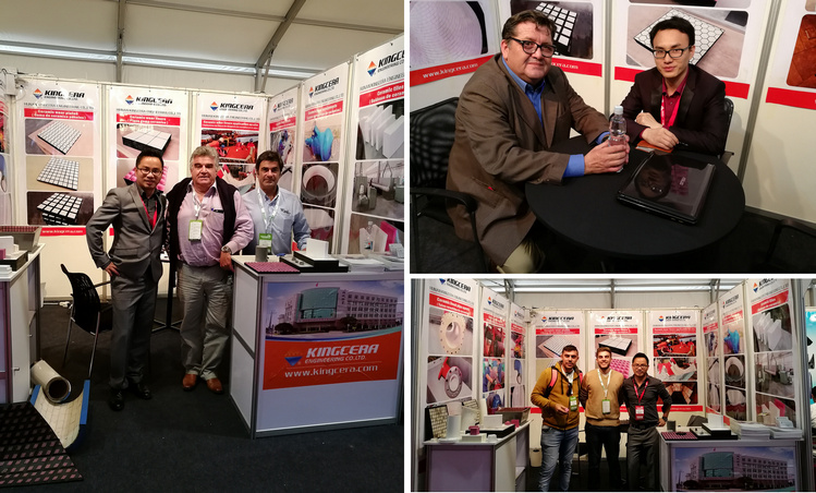 在為期5天的2017年智利Exponor礦業(yè)展覽會(huì)中,湖南精城特種陶瓷有限公司也攜公司主要拳頭產(chǎn)品:氧化鋁耐磨陶瓷復(fù)合襯板,耐磨陶瓷管道,耐磨陶瓷內(nèi)襯設(shè)備,耐磨陶瓷滾筒包膠以及新一代的耐磨陶瓷泵管道亮相展會(huì)。