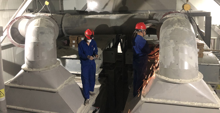 此次我司的安裝任務(wù)是某制砂廠φ1100、φ650除塵管道的彎、直管易磨損處安裝耐磨陶瓷和檢修平臺的搭建。由于??谑刑鞖庋谉?,日平均氣溫均達(dá)40℃以上,停機(jī)時間短且在距離地面20多米以上的高空進(jìn)行焊接作業(yè),給現(xiàn)場施工帶來了不小的挑戰(zhàn)。于是我司便先安排制作二班班長趕赴施工現(xiàn)場,勘察作業(yè)環(huán)境及是否能夠完成此次檢修平臺的搭建工作。當(dāng)制作二班班長到達(dá)某制砂廠時,已是當(dāng)日下午5點(diǎn)多了,客戶單位得知我司派人過來了,便安排廚房多炒幾個美味的菜品送至員工宿舍給我司(外)機(jī)械、安裝隊(duì)員吃。而當(dāng)客戶單位老板得知我司只安排一個人過來后,臉色轉(zhuǎn)變,立即拿起手中的手機(jī)與我司業(yè)務(wù)經(jīng)理進(jìn)行聯(lián)系,質(zhì)問我司這是什么意思?這就是我司所展現(xiàn)出來的實(shí)力?我司這樣的服務(wù)能力還怎樣合作下去?......當(dāng)天晚上,我司制作二班班長把某制砂廠的實(shí)際情況匯報(bào)給了楊總。第二天,楊總便立即組織(外)機(jī)械、安裝人員召開會議,會議強(qiáng)調(diào):既要保證人員的生命安全,又要在規(guī)定時間內(nèi)“保質(zhì)、保量”的完成任務(wù)。當(dāng)天,我司(外)機(jī)械、安裝隊(duì)員安全到達(dá)??谑忻捞m機(jī)場后,未做停留,立即趕往某制砂廠。到達(dá)某制砂廠后,我司(外)機(jī)械、安裝隊(duì)員一同前往施工現(xiàn)場,勘察作業(yè)環(huán)境,核實(shí)工作任務(wù),預(yù)估完成時間。