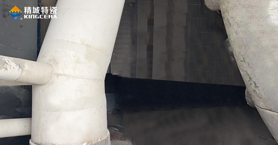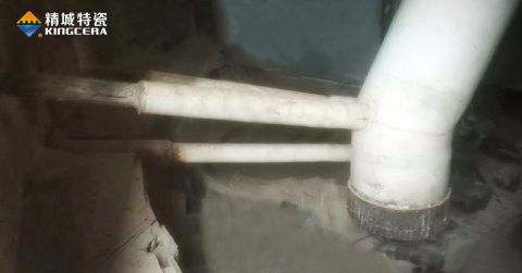 以回料管為例,生料立磨研磨的物料以礦石為主,大小不一、水分含量不同、硬度差異大、結(jié)構(gòu)復(fù)雜,而且還伴隨230℃左右的高溫,磨損情況復(fù)雜。而立磨回料管經(jīng)常需要輸送選粉機(jī)回落下來(lái)的礦石,棱角鋒利,加上太行山地區(qū)礦石硬度高,含鐵量較大,管道內(nèi)壁承受切削磨損,回料管外壁還要承受風(fēng)蝕磨損和強(qiáng)沖擊,同樣伴隨高溫。雙重磨損之下,回料管很容易被磨穿,針對(duì)這種復(fù)雜情況,精城現(xiàn)場(chǎng)技術(shù)支持工程師當(dāng)場(chǎng)給出了具體解決方案,不同磨損采用不同的陶瓷工藝,在盡可能節(jié)省成本的同時(shí)為客戶(hù)解決了磨損難題。